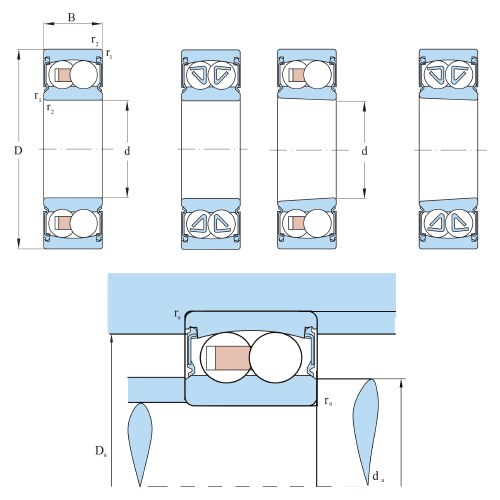 Vòng cách | Vòng cách thép hoặc vòng cách tiêu chuẩn, dẫn hướng bằng con lăn. |